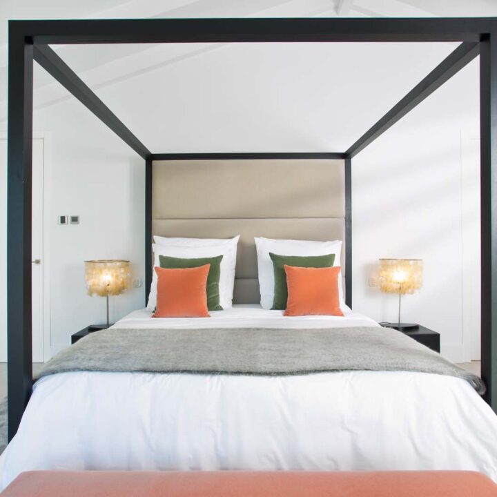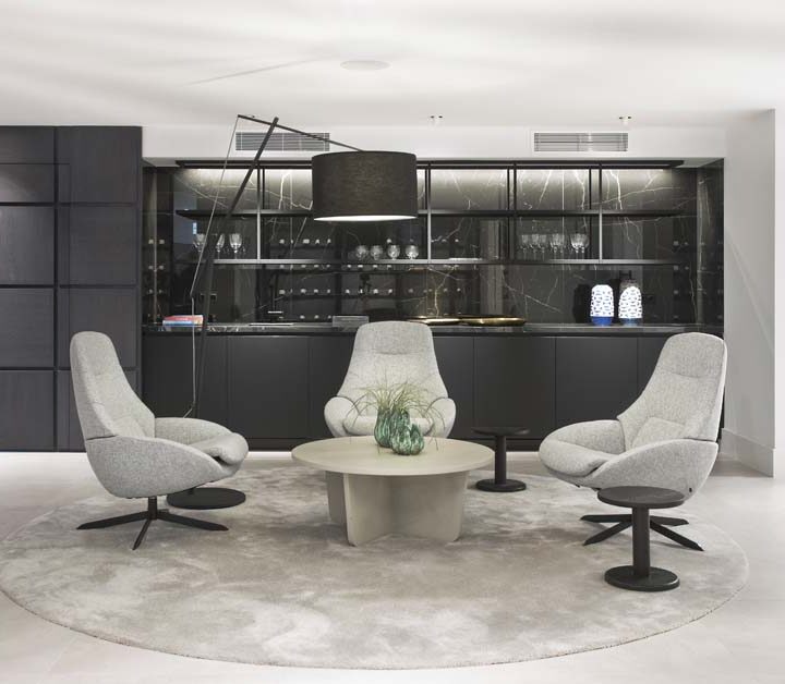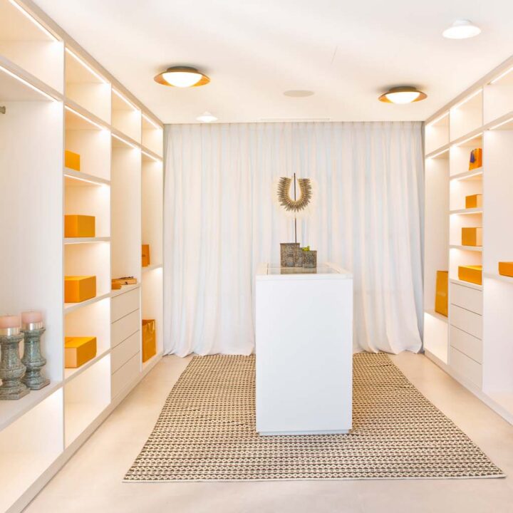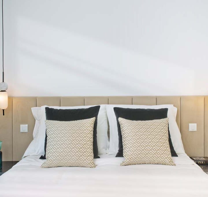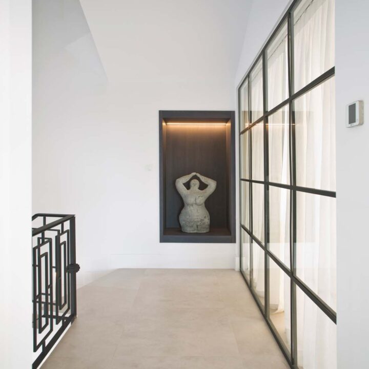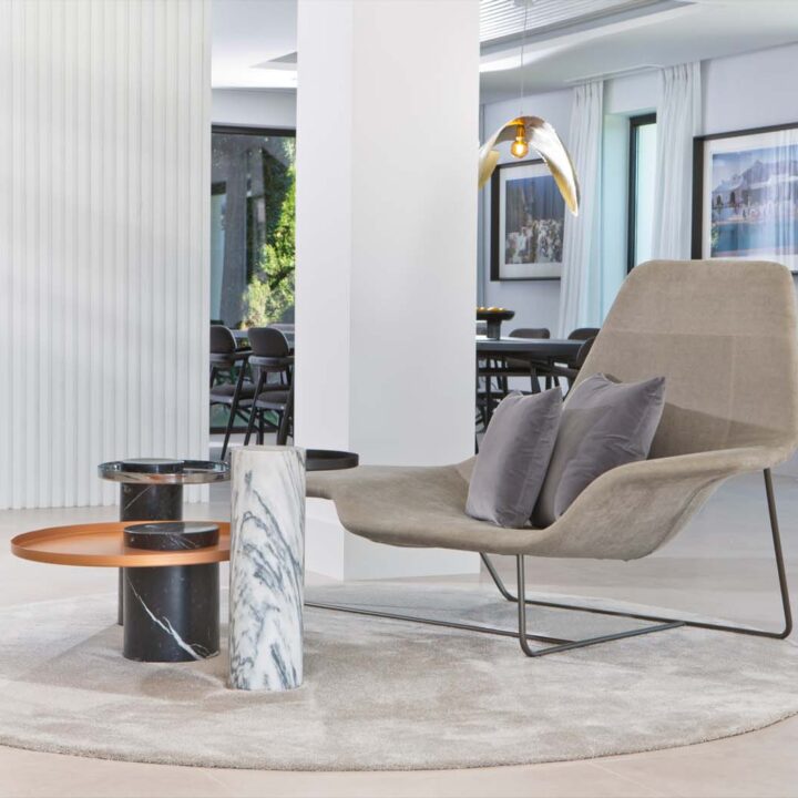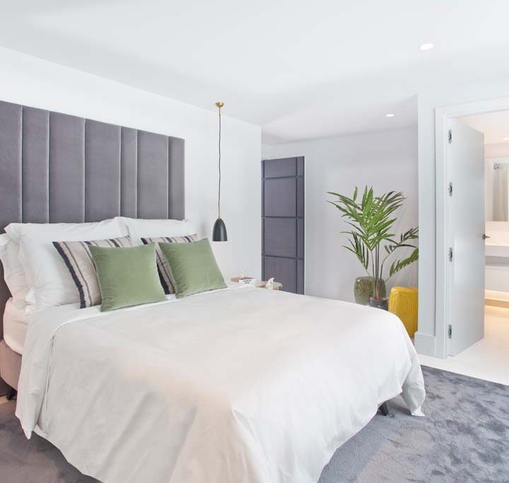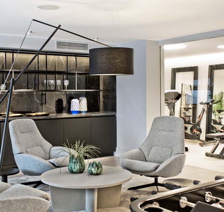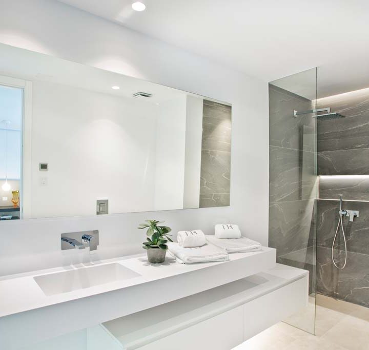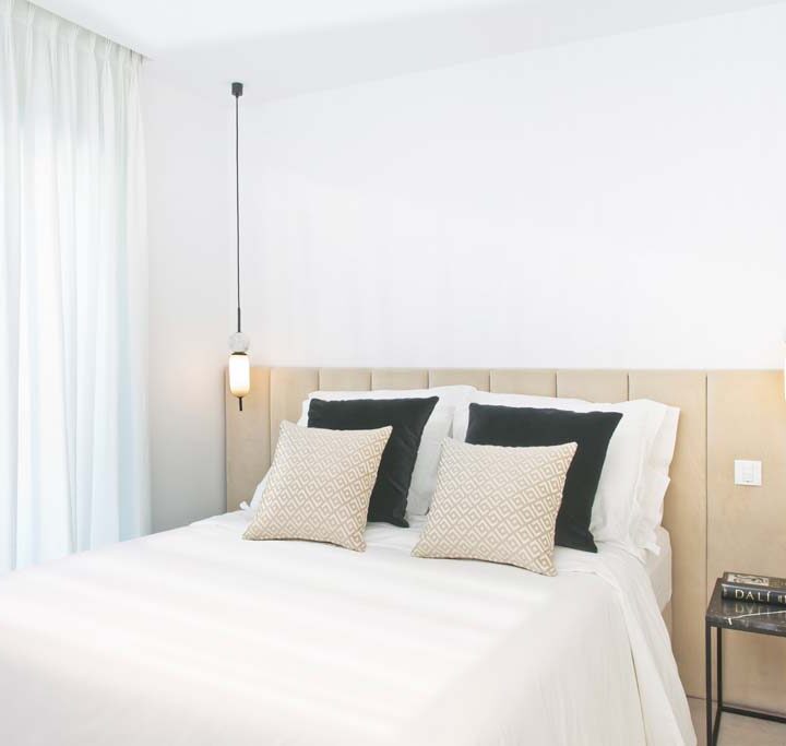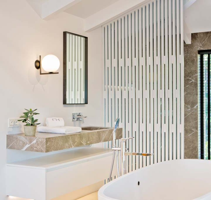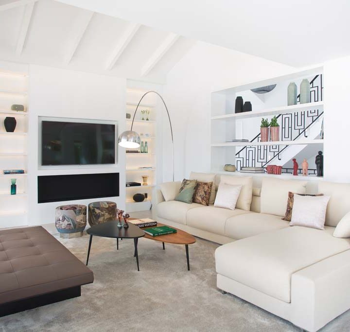 VILLA FLORENCE IMMEDIATELY welcomes you with an impressive driveway leading up to the entrance of the home. The entrance has double height ceilings with great natural light and gives you a striking overview of the open plan layout. On this level you have a spacious living area, connected with both dining and kitchen. It has been designed with white wooden details and marble counter tops to create a modern and homely feel.