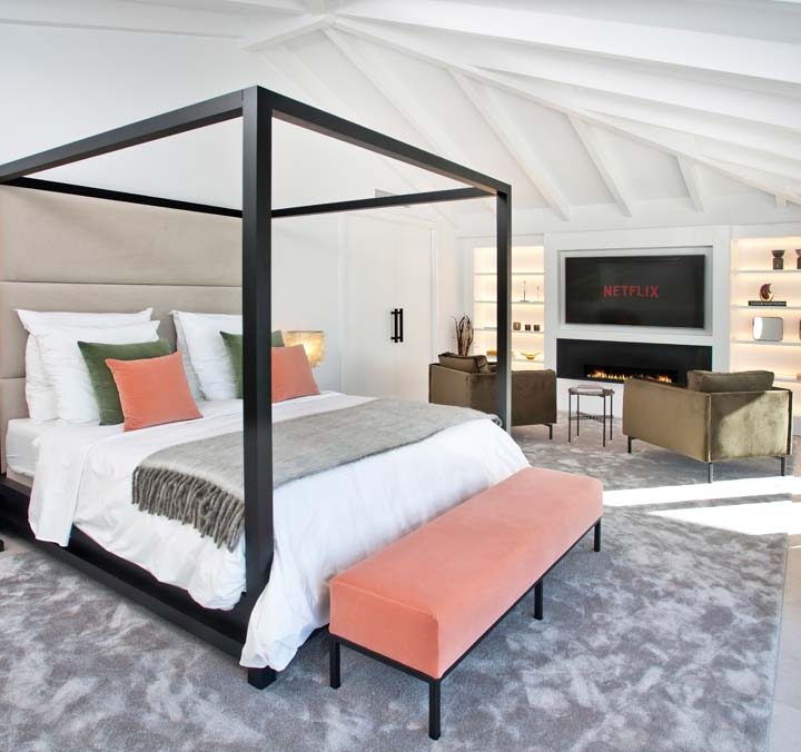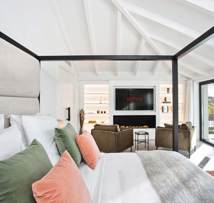 THE STAIRS IN the entrance will lead you to the master suite, where we have dedicated the whole upper floor for the owner to have a master they deserve. Impressive bedroom with generous space for both a king size bed and living room. A walk-in closet with automatically closing curtains and a bathroom with his and hers sink, shower and bath tub.