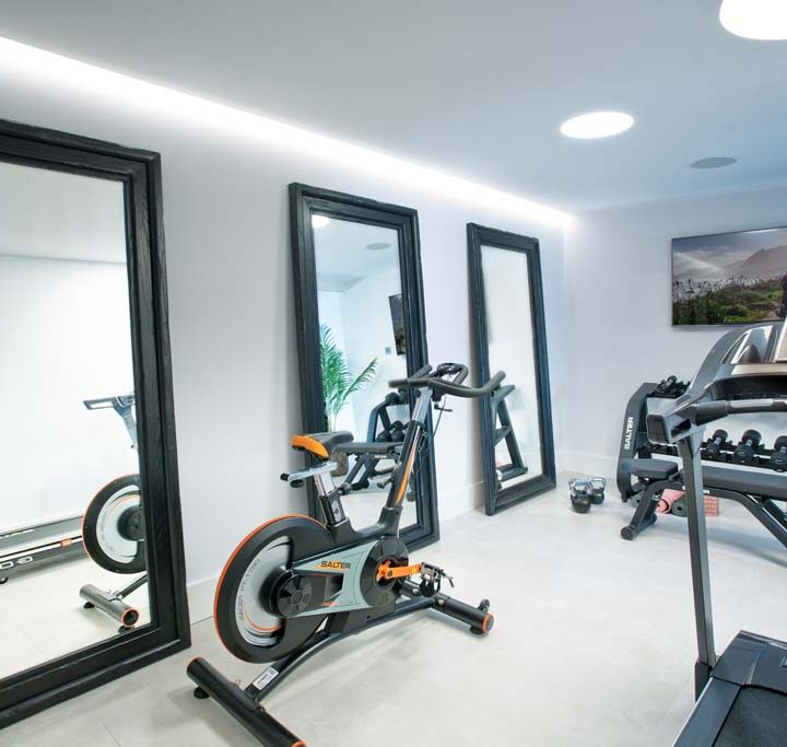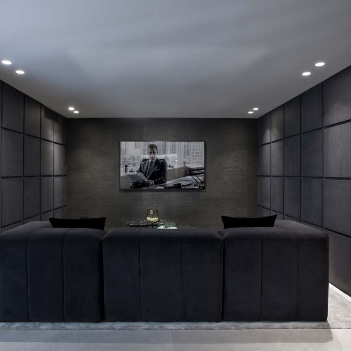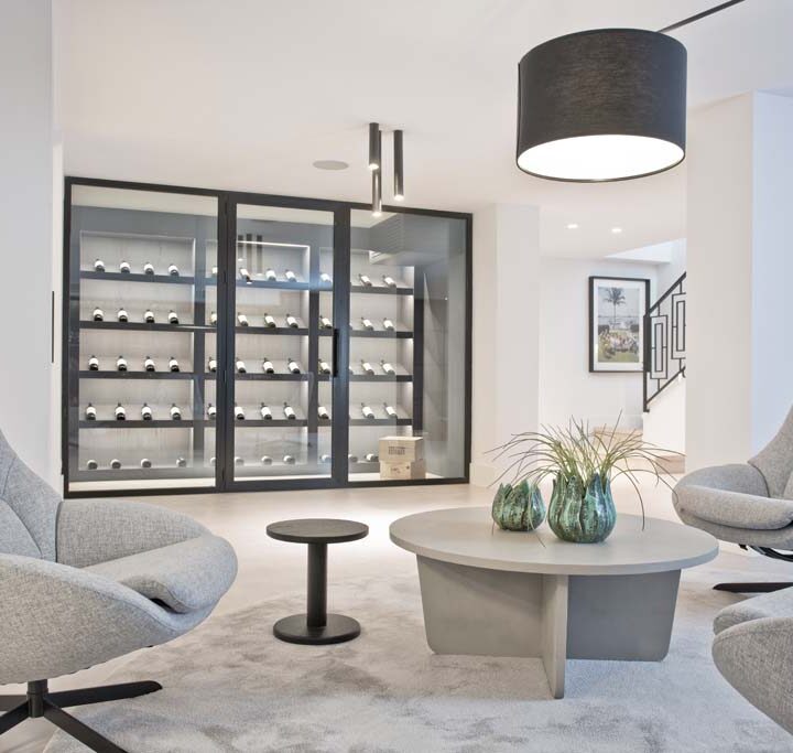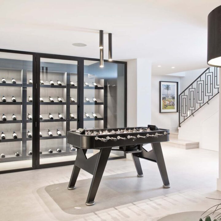 THE LOWER FLOOR is designed for entertainment! You have a movie room, gym, bar and temperature controlled wine cellar. Seating area and fuzzball-game. Thoughtfully designed for every need. On this floor you also have two more guest suites and garage.